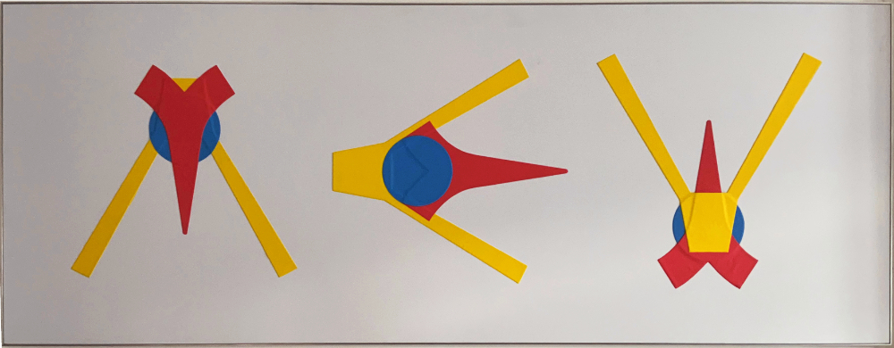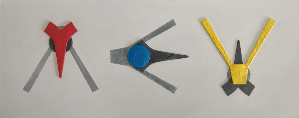 'Colour Study for Rock, Paper Scissors Triptych' Painted collage on MDF 29 x 72cms |